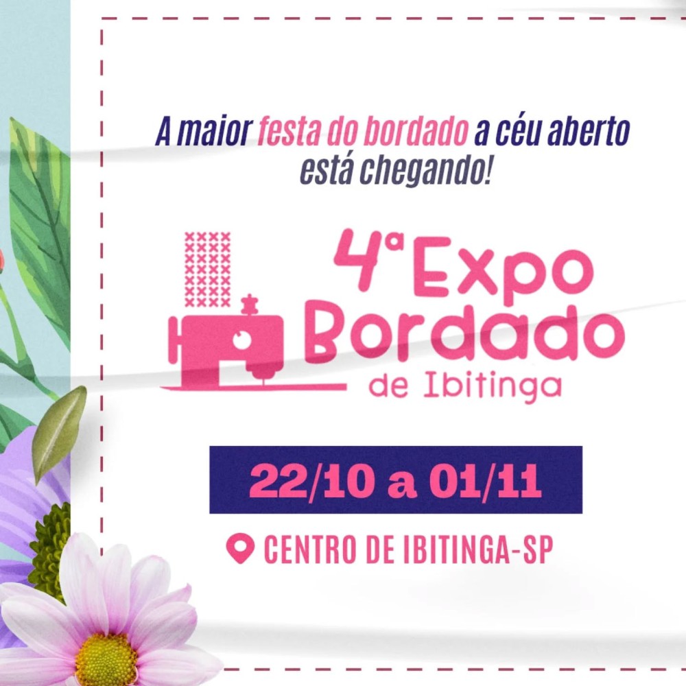 📆📍 A 4ª Expo Bordado de Ibitinga acontecerá de 22 de outubro a 1º de novembro no Centro da cidade.